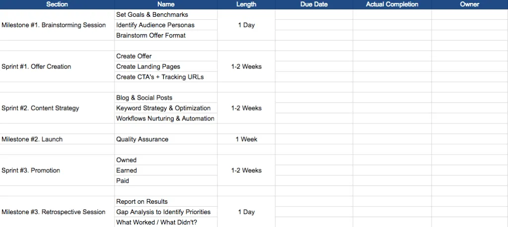 The first sprint is all about creating the compelling ‘thing’ you’re going to eventually promote.