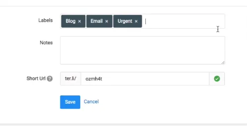 - Click save and voila! Your custom URLs are now ready. You can copy your short URL, or fully tagged link, as desired.
