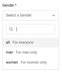 - Gender (all, women, men)
